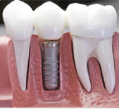 L'implantologia dentale, che si occupa di impianti dentari, permette di posizionare delle viti in titanio all'interno delle ossa mascellari e fungeranno da sostegno per la ricostruzione protesica (corone o ponti).
